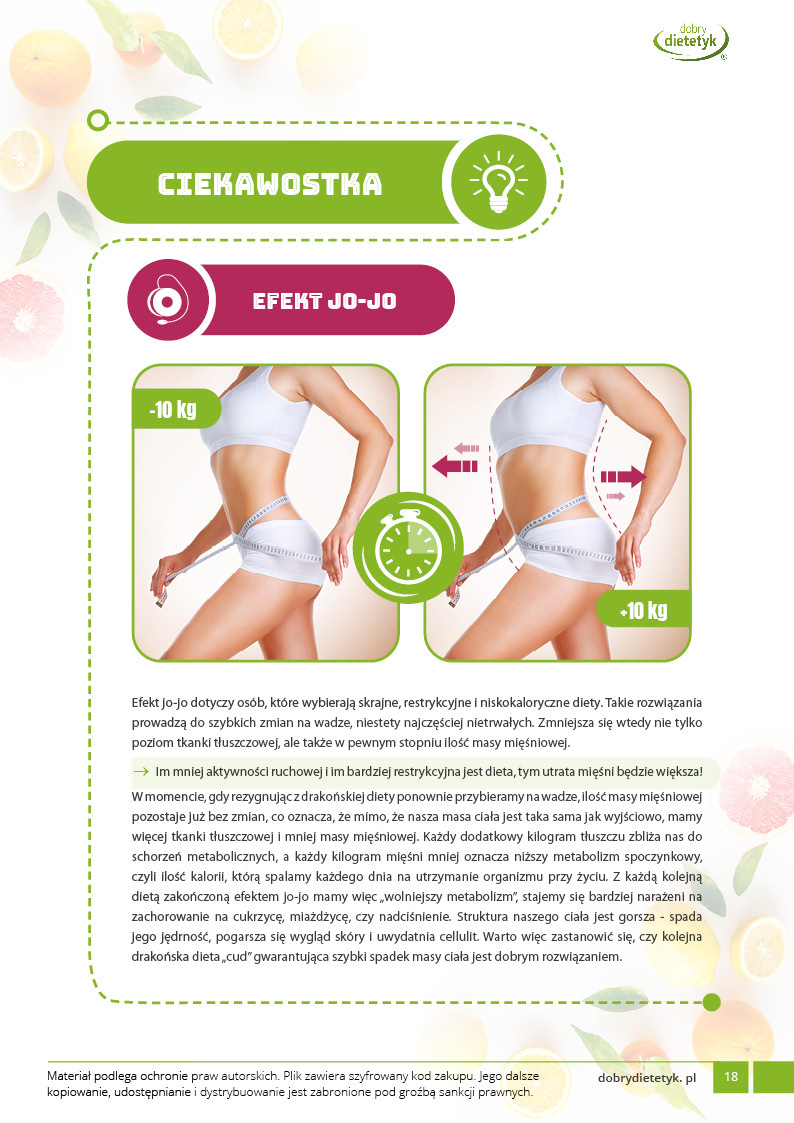 Dodatkowo do opracowanego planu dietetycznego otrzymasz atrakcyjnie przygotowane ciekawostki i wiadomości żywieniowe, które mam nadzieję pozwolą Ci zrozumieć wiele spraw związanych z nurtującym Cię problemem, a także przyczynią się do zwiększenia ogólnej wiedzy żywieniowej.