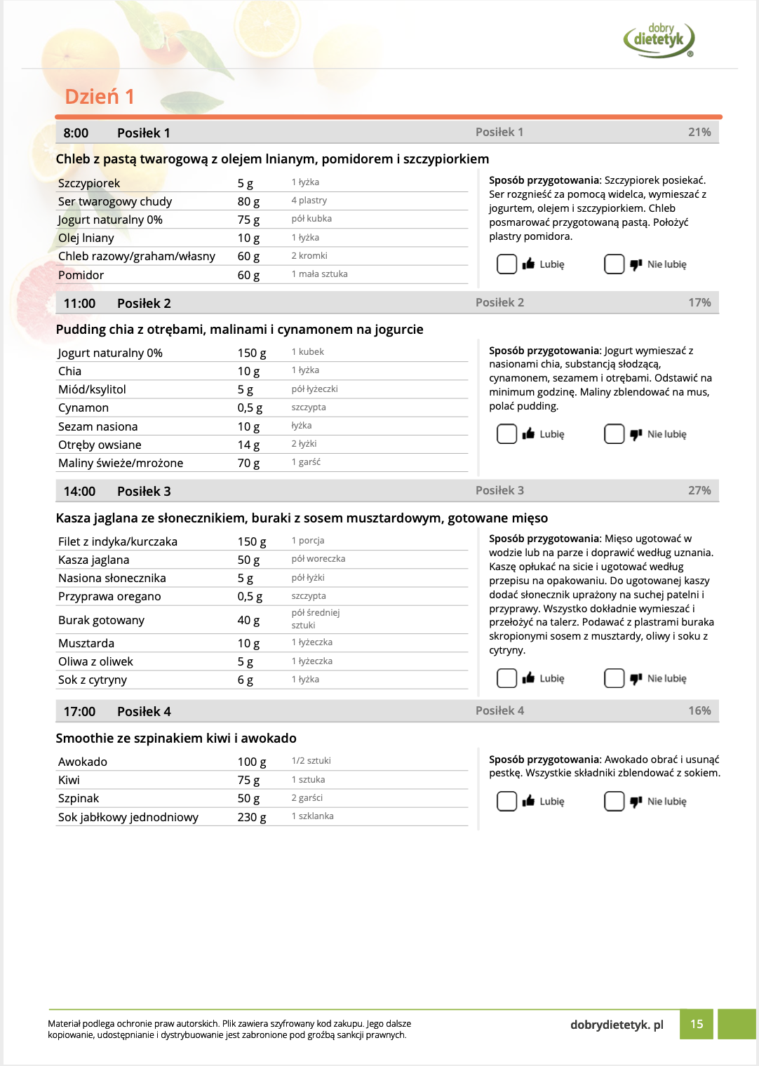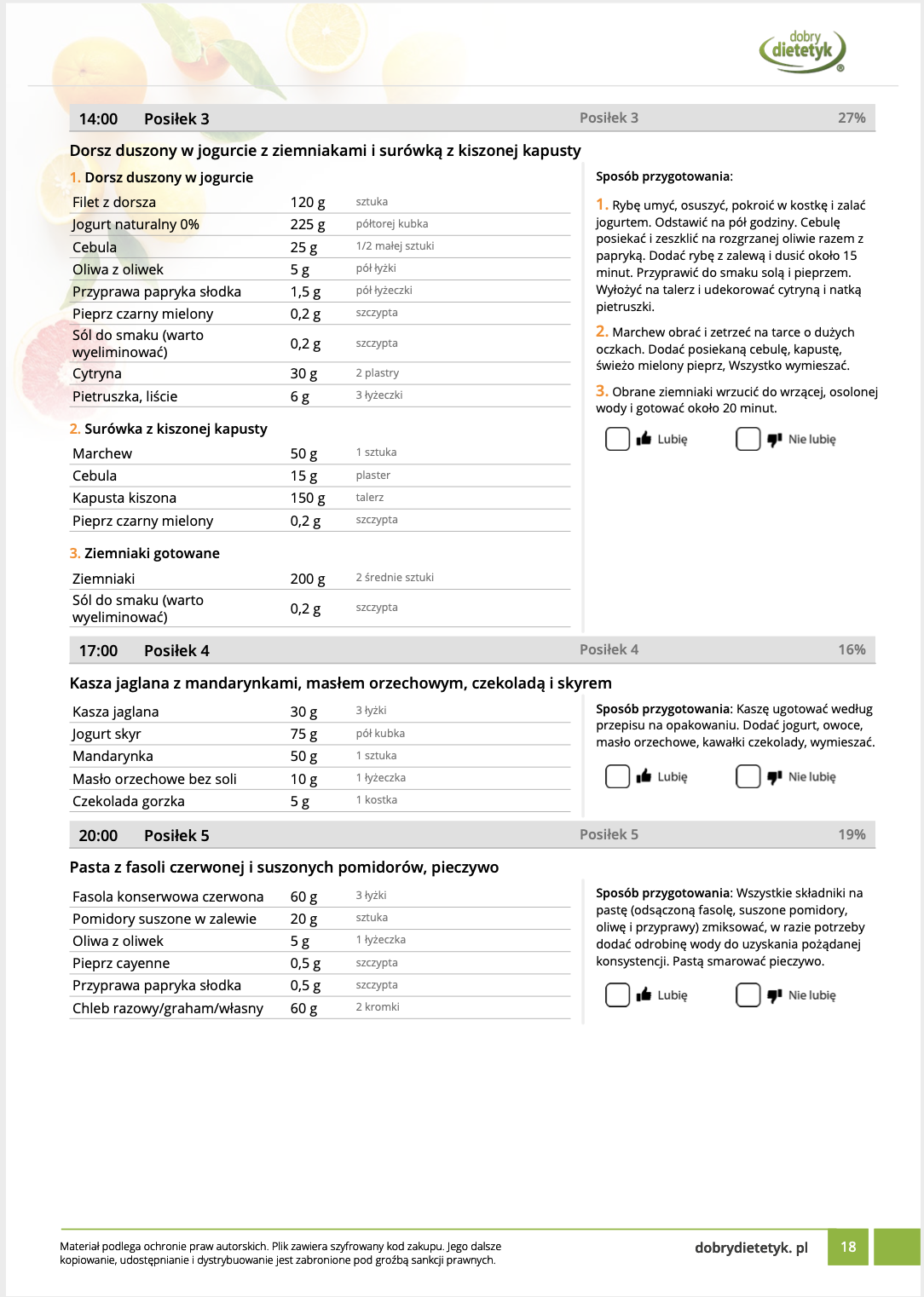 • Liczba posiłków w ciągu dnia: 5