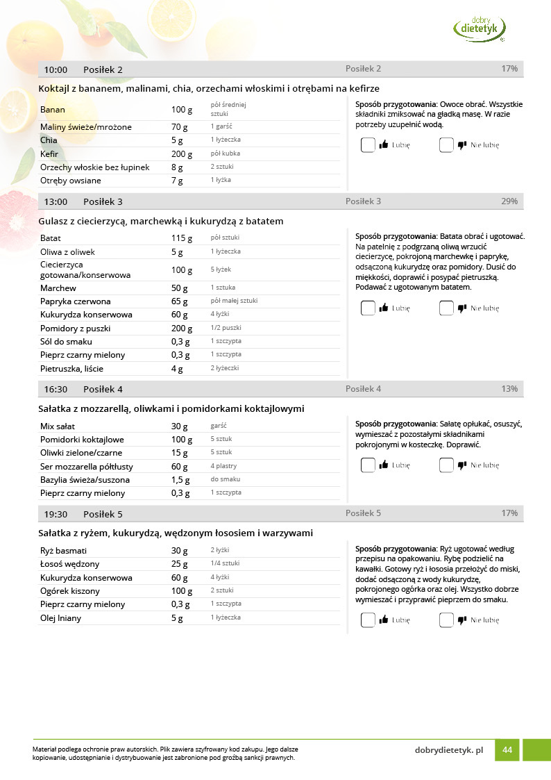 • Liczba posiłków w ciągu dnia: 5