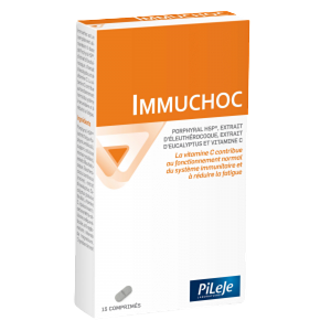 Immuchoc to suplement diety na bazie Porphyralu HSP®, ekstraktu z żeń-szenia syberyjskiego, ekstraktu z eukaliptusa i witaminy C. Witamina C przyczynia się do prawidłowego funkcjonowania układu odpornościowego i zmniejsza uczucie zmęczenia.