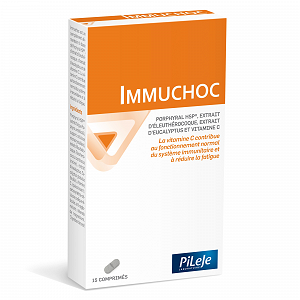 Immuchoc to suplement diety na bazie Porphyralu HSP®, ekstraktu z żeń-szenia syberyjskiego, ekstraktu z eukaliptusa i witaminy C. Witamina C przyczynia się do prawidłowego funkcjonowania układu odpornościowego i zmniejsza uczucie zmęczenia.
